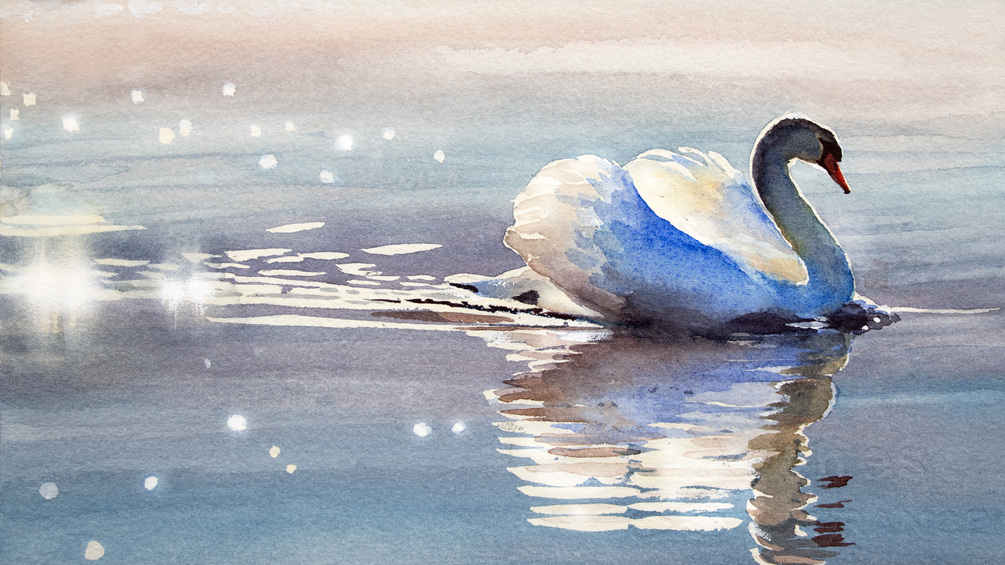 Watercolor Painting of a Backlit Swan