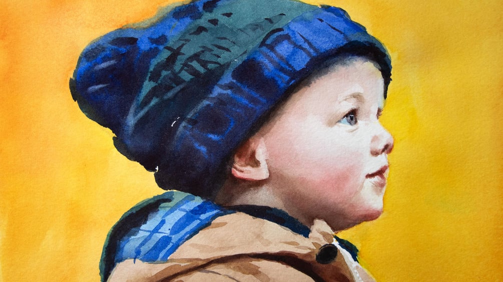 This portrait painting lesson shows you the steps to finish a watercolor painting from a photo reference (reference image is included inside). Through the step-by-step painting process, I will share with you: