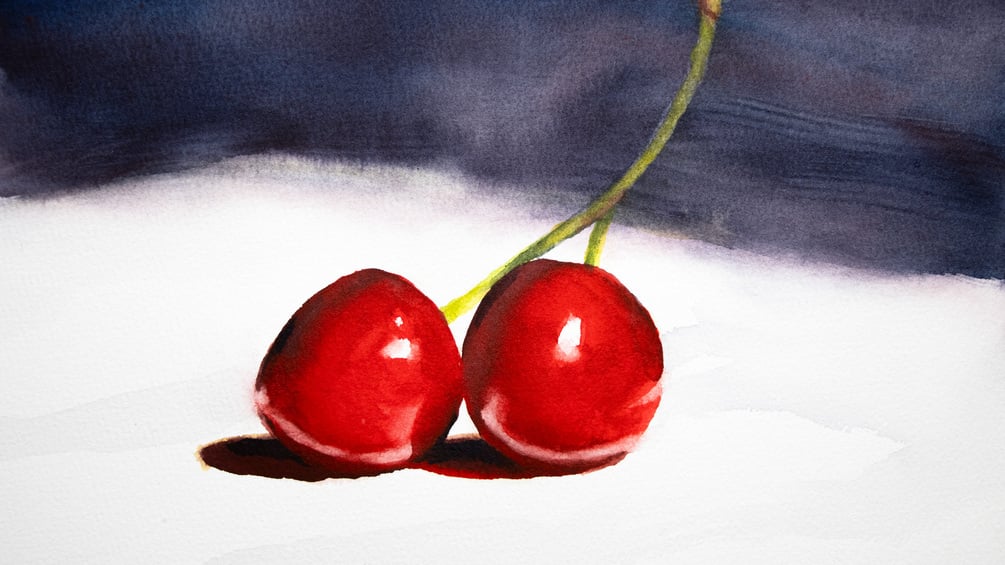 Watercolor Painting of Cherries